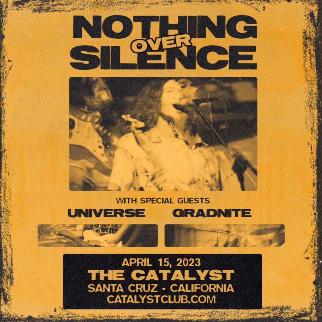 Tickets $10 in advance/ $15 once doors openwith GRADNITE and UNIVERSENothing Over Silence is a punk band local to Santa Cruz California formed in 2021. From speedy upbeat rock songs to slow heavy ballads, N.O.S. is not afraid to experiment with new sounds and structures on how to write a song. Taking influence from a variety of genres from fast melodic punk to emo rock, Nothing Over Silence is the energetic music that the always exciting Santa Cruz rock scene creates.